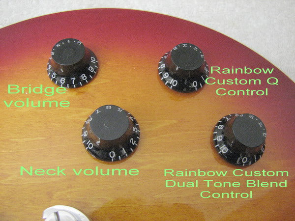These Studio Custom also features our own Dual-tone Blend Control AND custom Q-control for a wide range of tonal variety,not offered on similiar looking guitars.The control cavity is also shielded in our own shop to help reduce RF intereference from out side sources and other "noise gremlins"