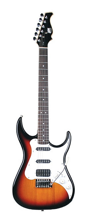 This model features a classic six-screw vibrato bridge,fitted with chromed die-cast saddles(not the cheepie folded ones most other seem to to have. The bridge humbucker and middle and neck position pkps,all by EMG are fed to a 5-way selector and our own RE-Voiced tone controls.Rosewood fingerboard & maple neck with smooth,adjustable die-cast machine heads for stable tuning.