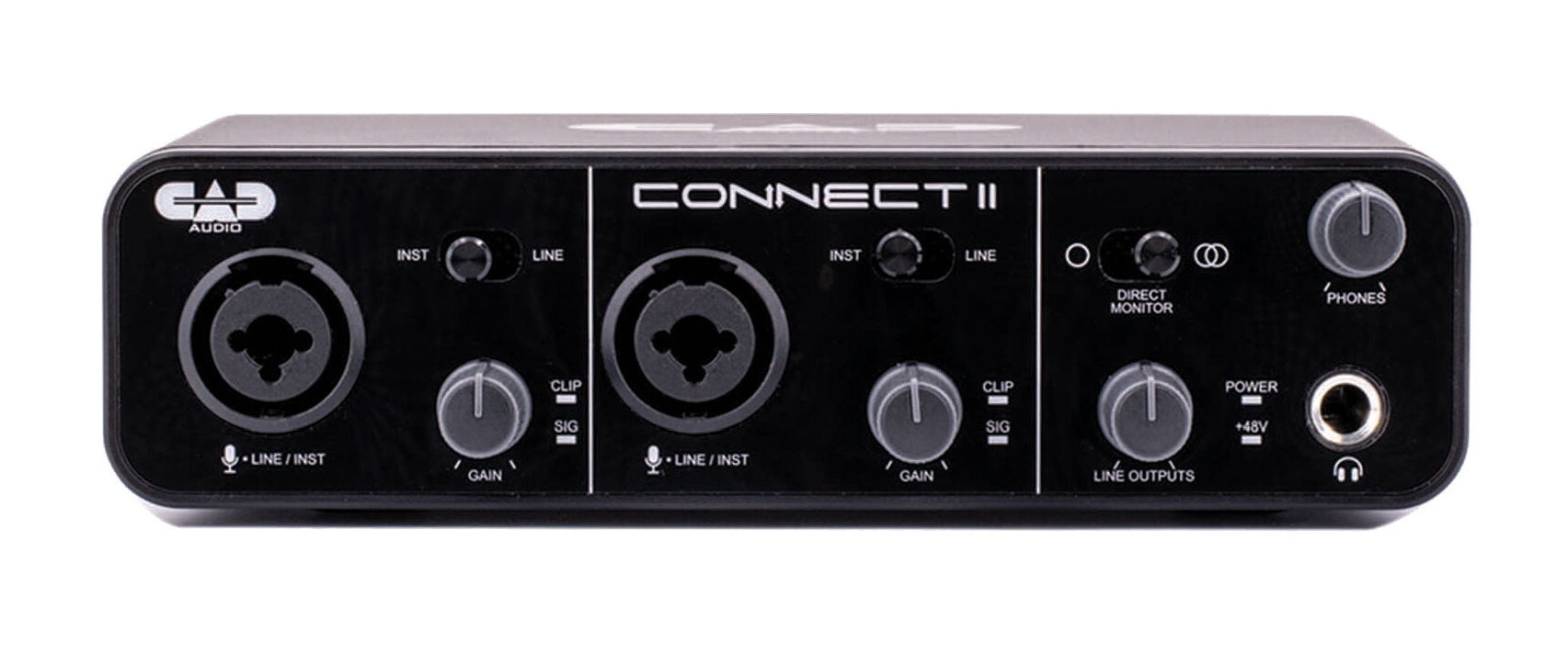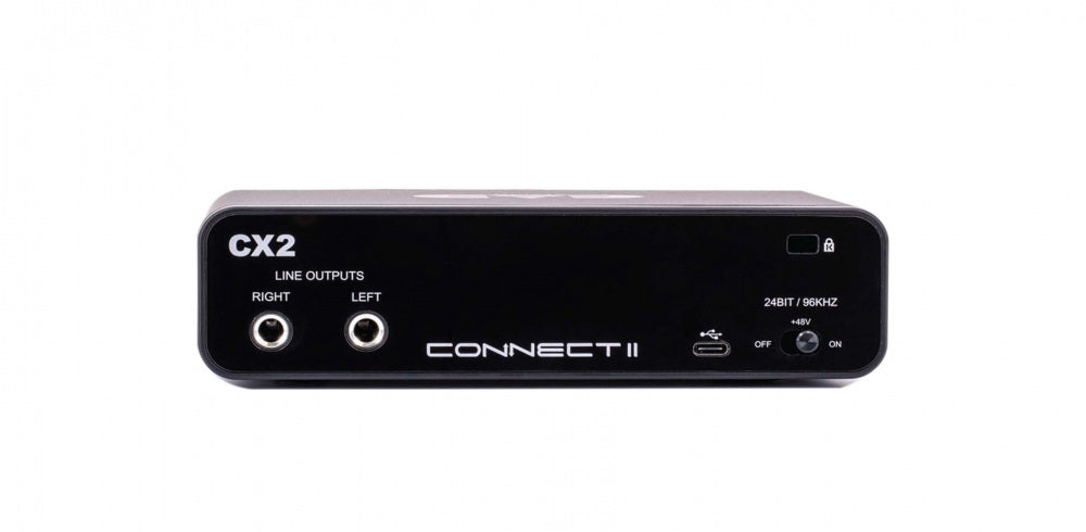 Record at home or on the go with the CAD Audio CX2 USB Audio Interface. The Connect II features 2 XLR combo inputs which can accommodate either a microphone or instrument-level audio signal, making it a perfect solution for the singer/songwriter; or a vocalist with an accompanying instrumentalist. The CX2 offers 48V phantom power and is fully USB powered, no external power source required.