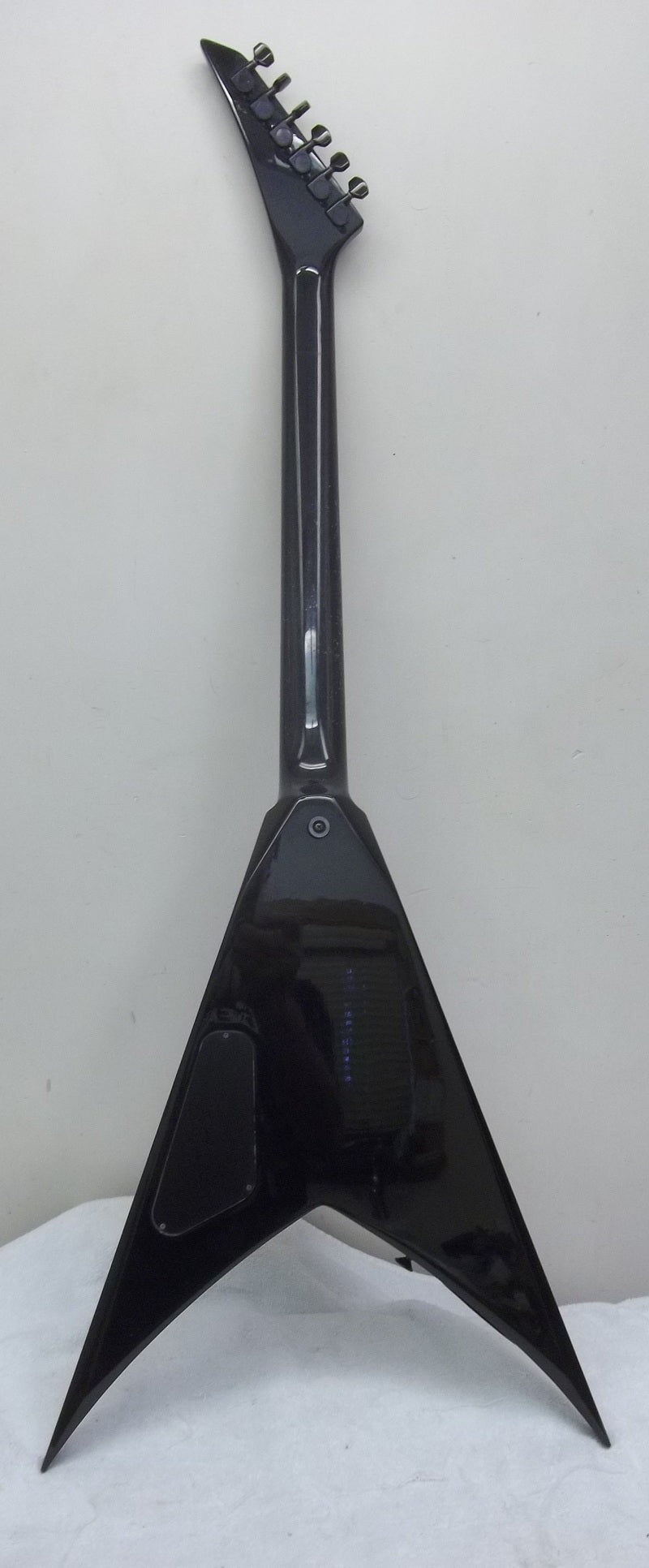 Solid body V ,with neck through construction .The neck is maple with a 22 fret rosewood fingerboard & the bodywings are alder. nut width is 1 11/16” and the scale length is 25.5”.