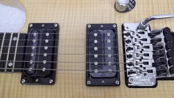 The Dean DMT humbuckers offer high output tone while the Floyd Rose Special tremolo will fill your playing with extensive trem tricks. The Dean Custom 350 Floyd is equipped with coil tapping on the push/pull volume knob allowing the player to split the humbuckers into single coils for a versatile set of guitar tones.