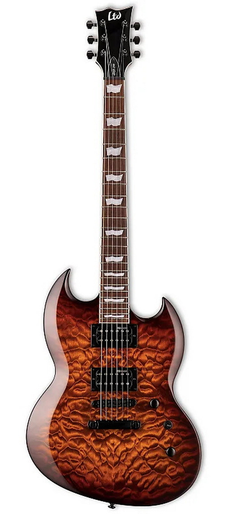 The LTD Viper by ESP offers the cool offset double-cutaway look that’s perfect for metal, hard rock, blues, and so much more. With the Viper-256, you get the classic vibe of a mahogany-bodied, 24.75” scale rock and roll machine. cost, The Viper-256 offers great features like a set-neck construction with a fast three-piece mahogany neck, roasted jatoba fingerboard with 24 extra-jumbo frets, a set of high-output ESP Designed LH-150 humbuckers with a coil split function on the push-pull switch as well as LTD tuners and an LTD TOM bridge & tailpiece.