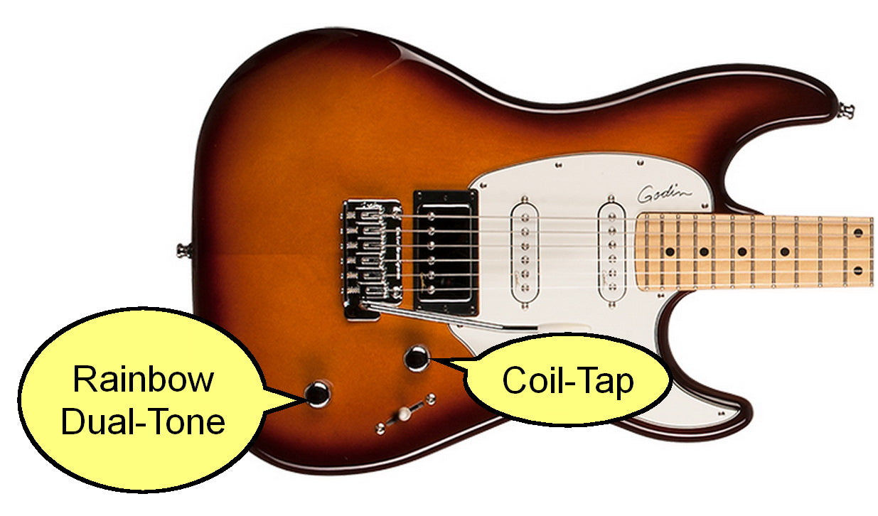 • 2 X Godin GS-1 single coil pickups, 1 x Godin Humbucker.Custom voiced DVT control