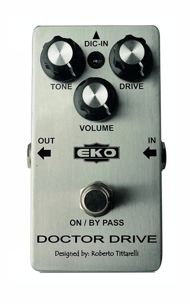 The DOCTOR DRIVE from EKO, is a handmade designed. overdrive developed in collaboration with Roberto Tittarelli. It is a very transparent, very dynamic overdrive with a remarkable tonal versatility. Equipped with true bypass footswitch,Drive, Tone, Volume.