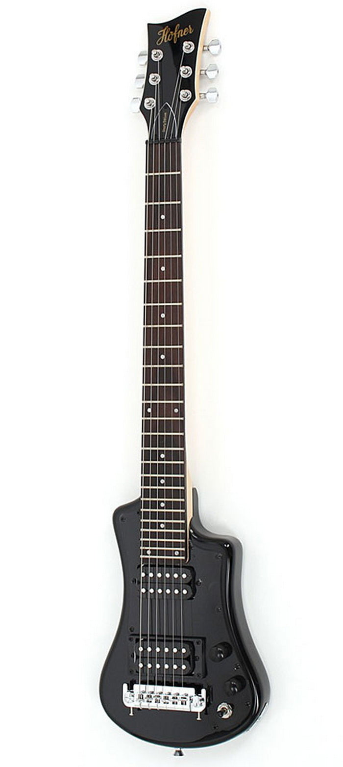 The perfect travelling companion just got even better – introducing the new Hofner Shorty Deluxe. Offering versatility and convenience in the one compact package, the deluxe model offers the same full-scale length and small overall dimensions as the original model, making it ideal for playing anywhere at any time, whether on the couch or on the road. What takes the Shorty Deluxe to the next level is the addition of twin Humbucker pick-ups, giving an extended range of tonal values to get the sound and warmth you want. And it looks just as great as it sounds, with a new headstock design reflecting the classic Hofner style. This guitar will fit in most overhead lockers in aircraft and comes with a durable, padded Hofner gig bag.Gloss black finish.Dual Humbucker model