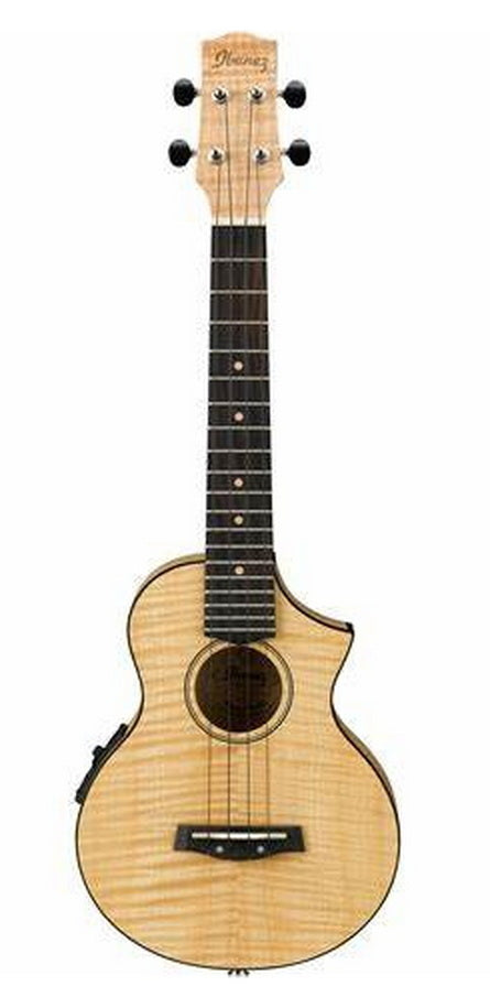 Ibanez is pleased to add the pantheon of this popular instrument with the UEW12E which features a flame maple body with a cutaway and C shape neck that makes it even easier to access all frets for fun solos when you're not just strumming along as well as an under saddle pickup and built-in preamp for plugged in situations,as well as a built-in tuner.Other appointments include a plastic saddle and nut, abalone rosette and chrome open gear tuners.