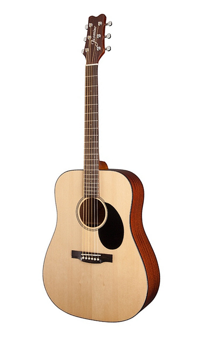 The Jasmine JD-36 is a handsome dreadnought guitar with a full, robust sound and refined features. Great for any player seeking the bold sounds that the dreadnought body style offers, the JD-36 features a select spruce top with Jasmine’s Advanced “X” Bracing, and sapele back and sides.