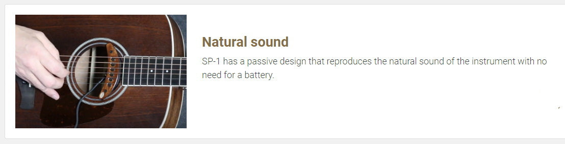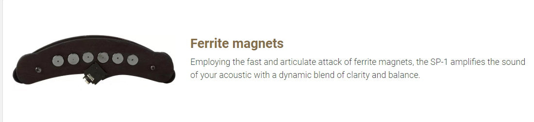 Employing the fast and articulate attack of ferrite magnets, the SP-1 amplifies the sound of your acoustic with a dynamic blend of clarity and balance.