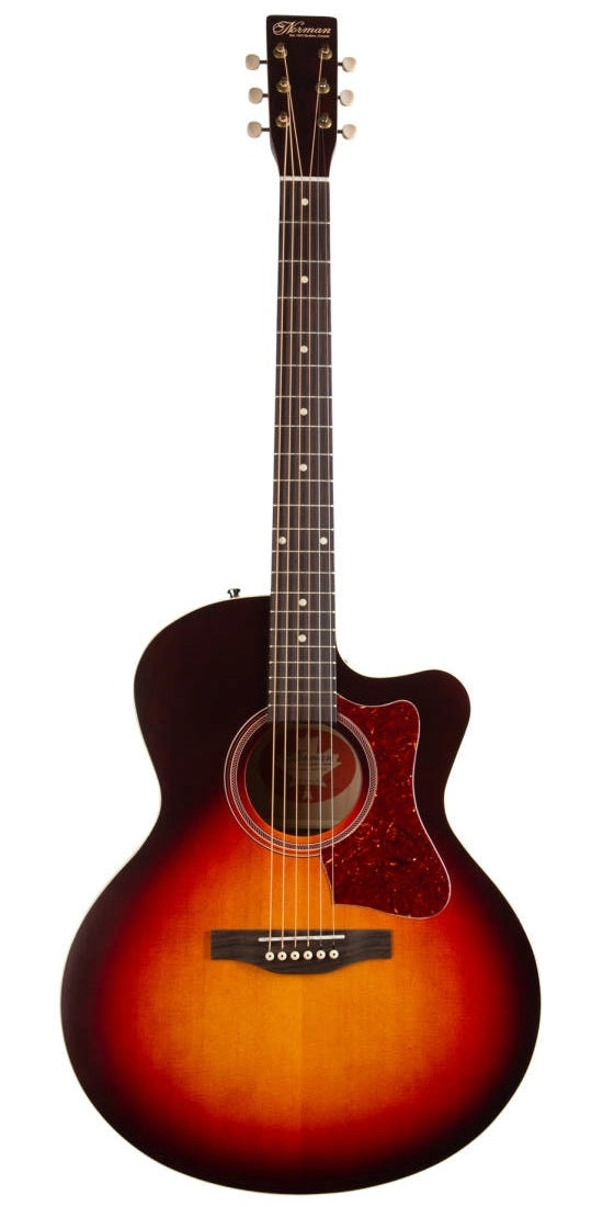 Are you looking for a high-quality Mini Jumbo-sized guitar at a great price? Your search stops here with the Norman B18 CW MJ Cherry Burst A/E! From the minute you pick up the B18 CW MJ, you will immediately notice and feel the array of quality features at your fingertips. The body is of Canadian Wild Cherry construction, with a solid Sitka Spruce Top.