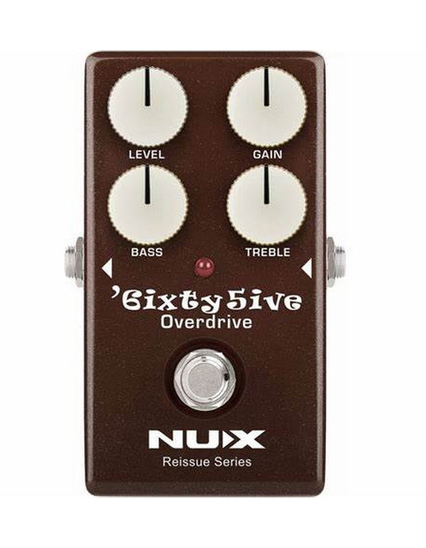 The NUX '6ixty5ive Overdrive pedal from our bestselling Reissue Series offers up the punchy clear tones of the Classic Black Panel Fender amps from the 60's. It's an easy-to-handle glassy overdrive that retains the characteristics of the guitar with great sustain and natural compression.