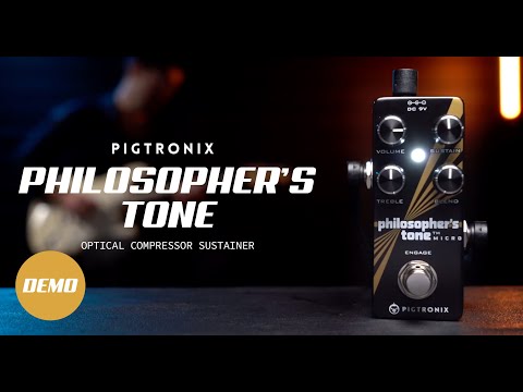 Turn lead to gold with the Pigtronix Philosopher’s Tone Micro. Famous for its noiseless clean sustain, the Philosopher’s Tone stands out as a uniquely powerful guitar effect in the crowded world of compressor pedals. The Philosopher’s Tone Micro packs all of the optical compression and unrivaled sustain of the original award winning Pigtronix pedal into a micro size chassis that runs on standard 9V external power.