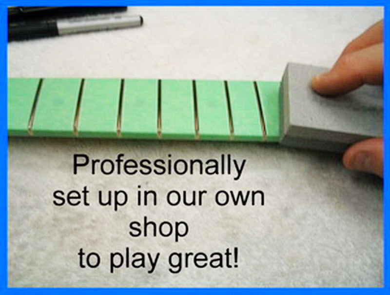 Our price includes our custom shop set-up(pro-level fretwork,superb ,better than 3/32" string action,shielding,gigbag and free TWO-YEAR seasonal maintenance coverage