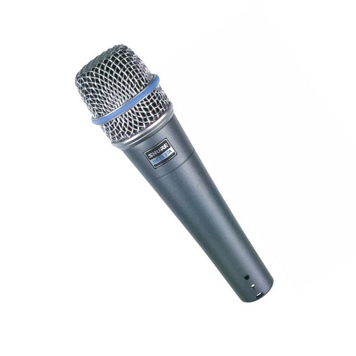 The Shure BETA®57A is a high output supercardioid dynamic microphone designed for professional sound reinforcement and project studio recording. It maintains a true supercardioid pattern throughout its frequency range. This insures high gain-before-feedback, maximum isolation from other sound sources, and minimum off-axis tone coloration.