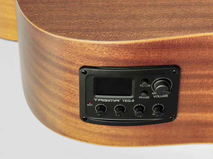 The compensated saddle fitted to the Tagima engraved bridge,offers more accurate tuning across the 20 fret fingerboard