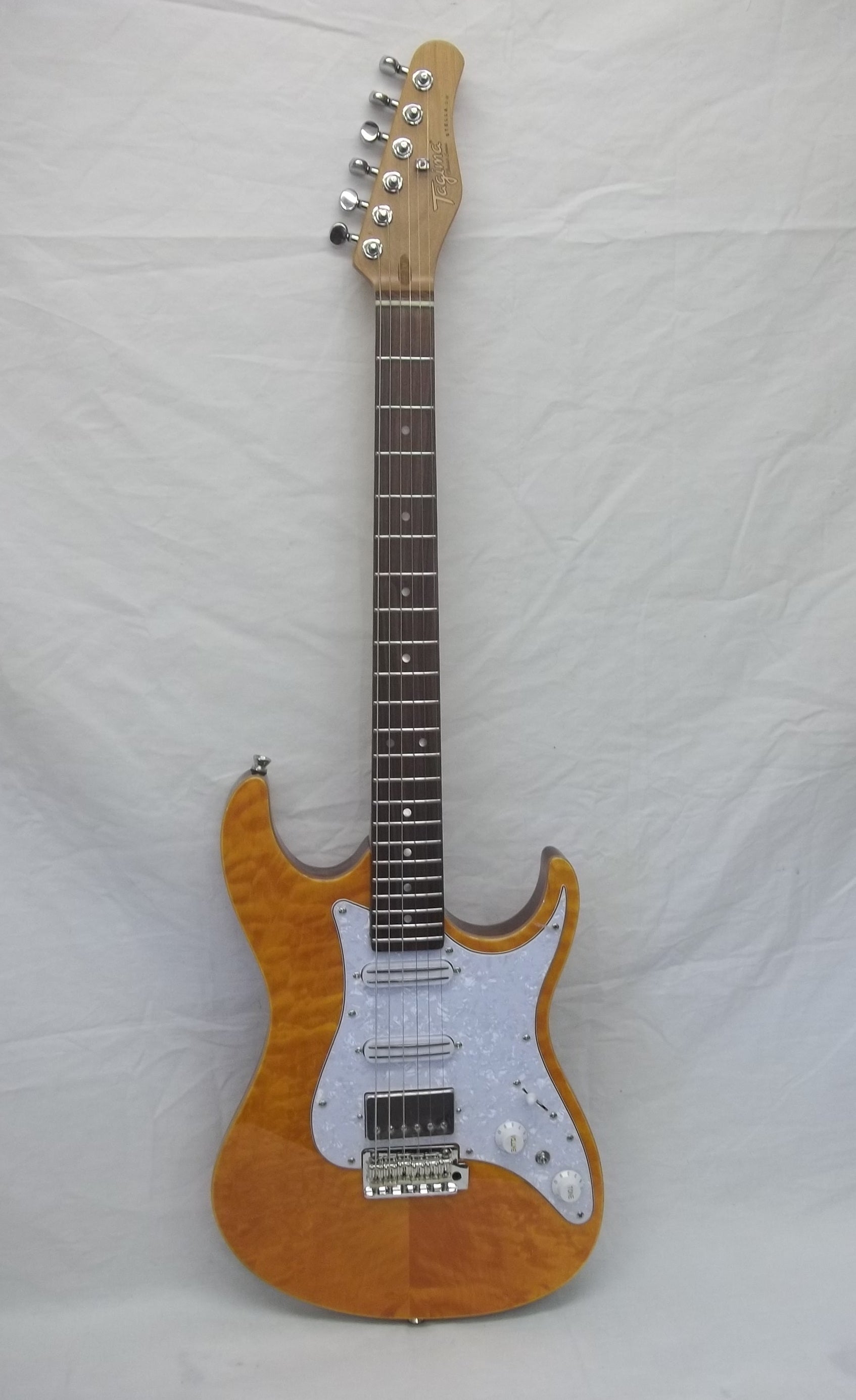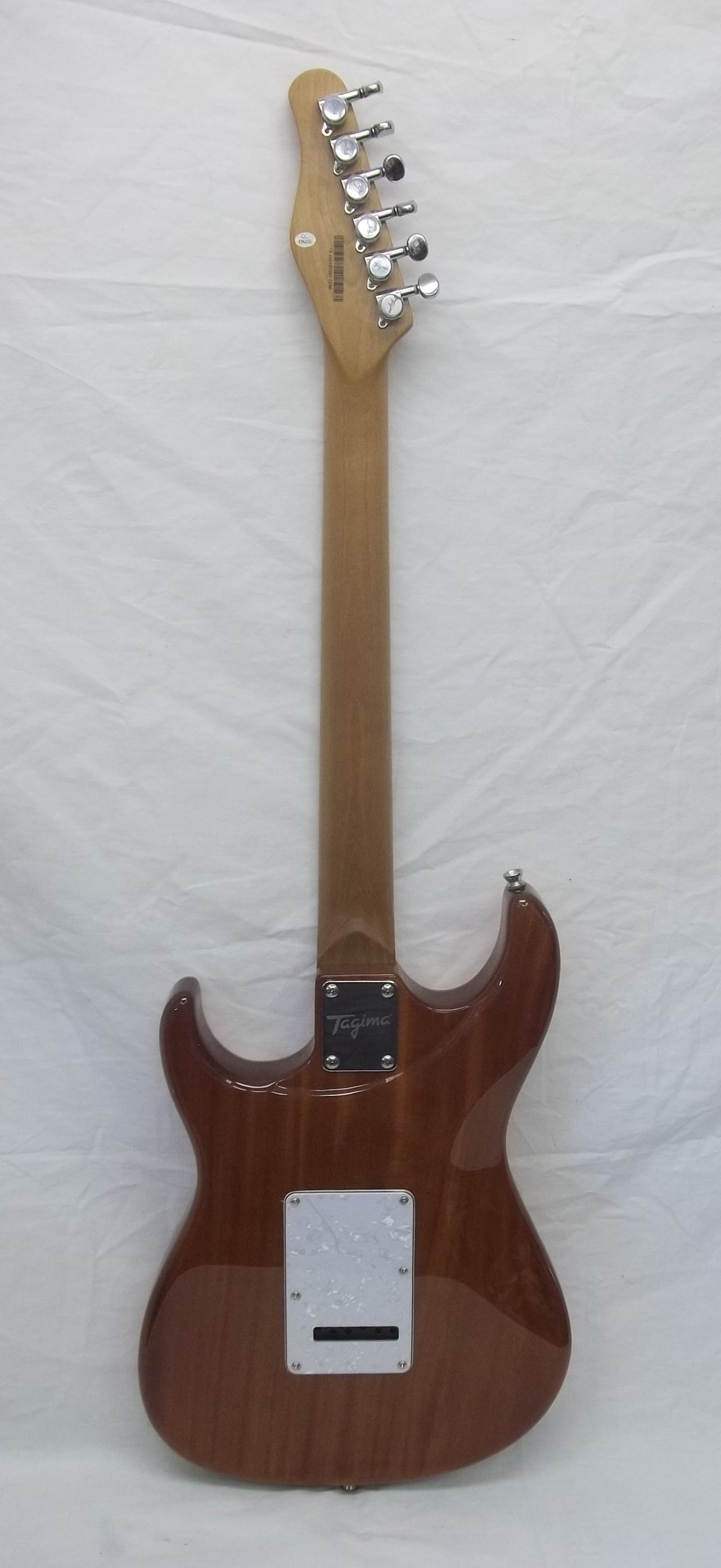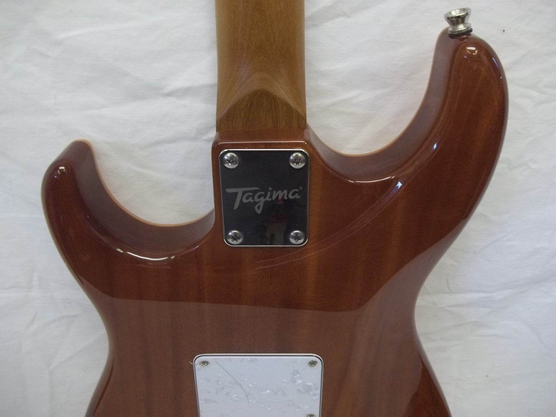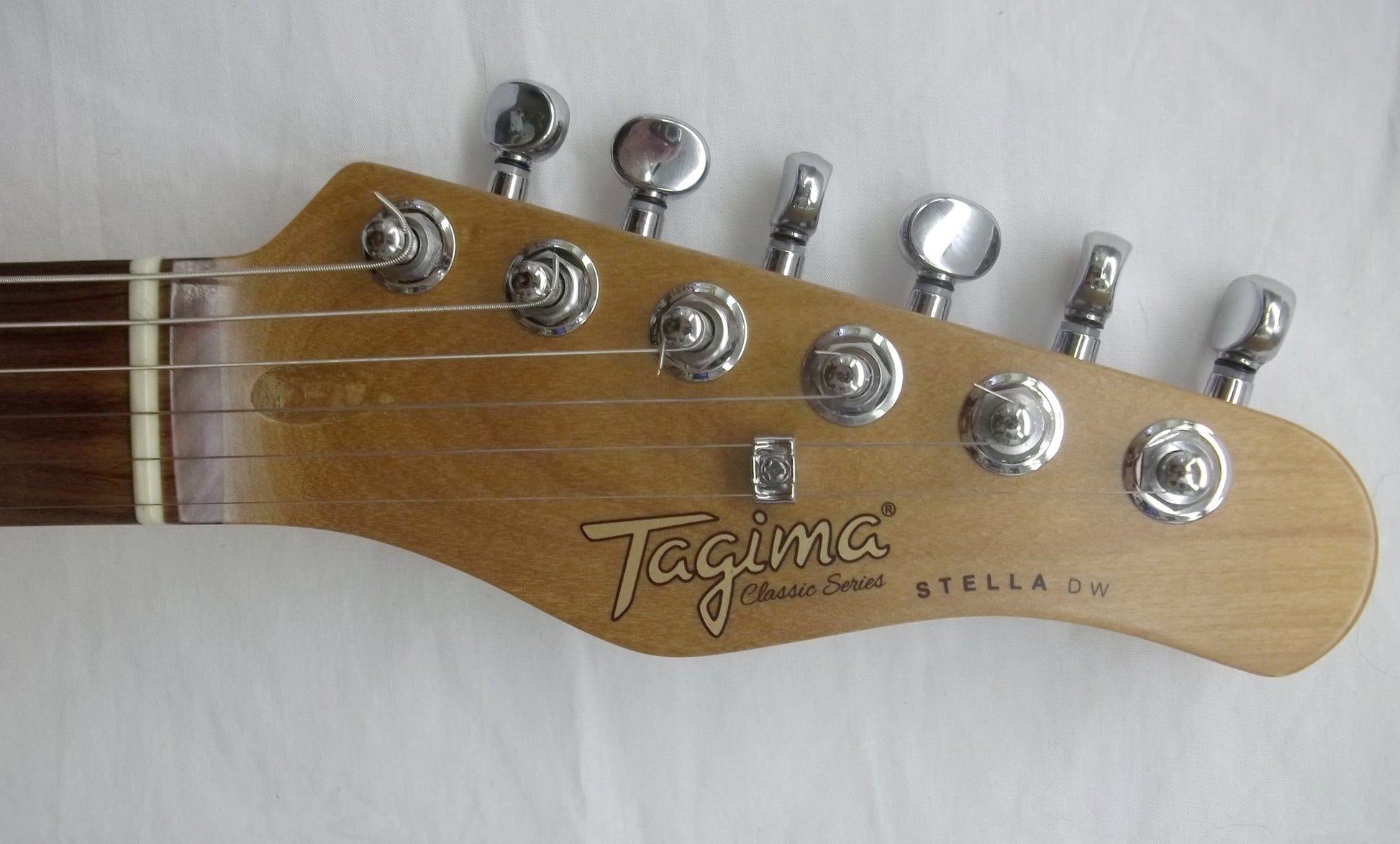 The 2-point vibrato bridge is backed up by a set of Tagima Locking Tuners to keep things under control without needing a locking nut.