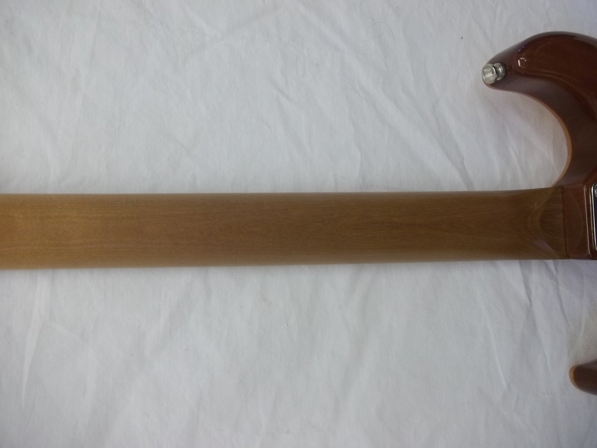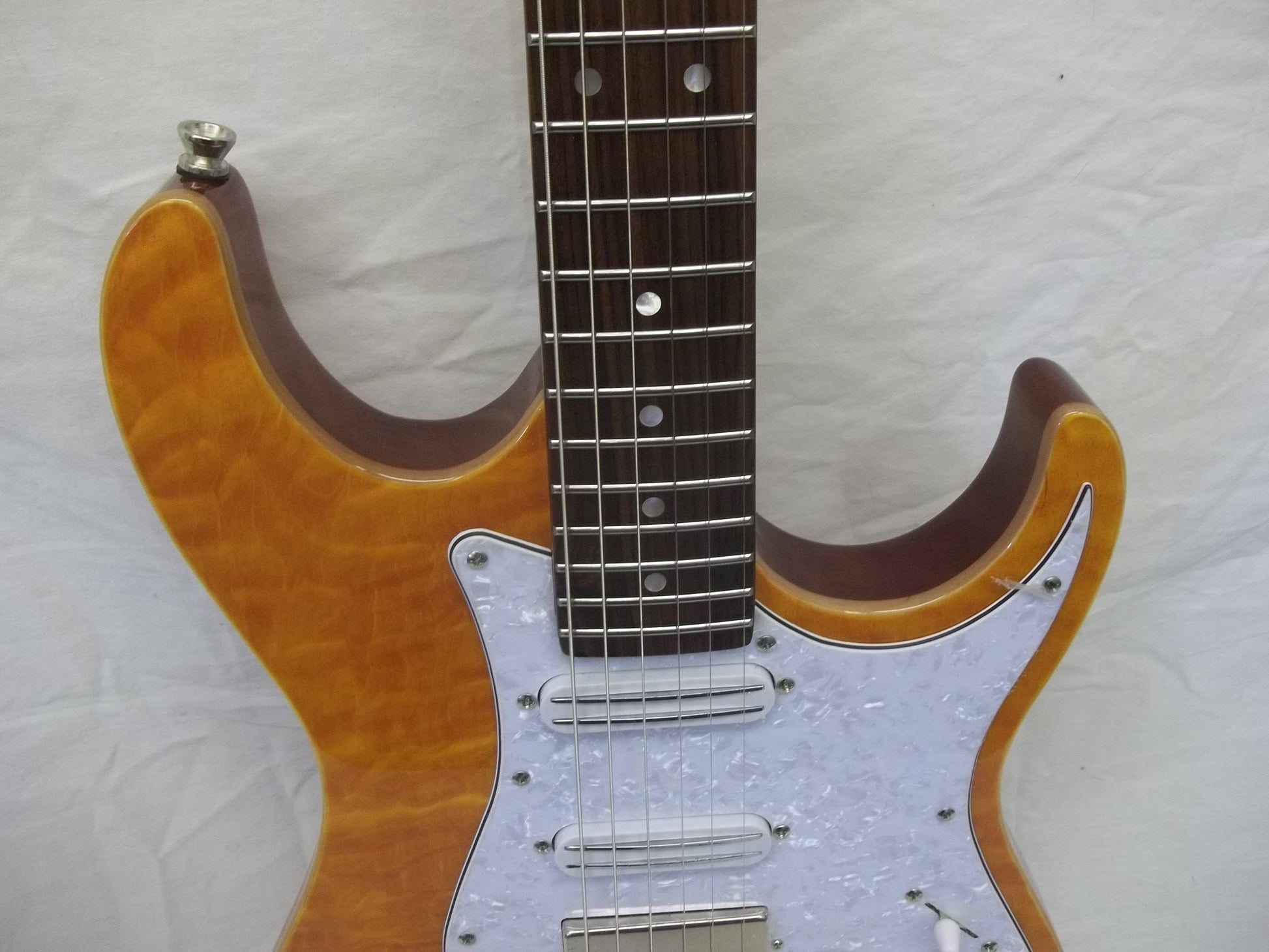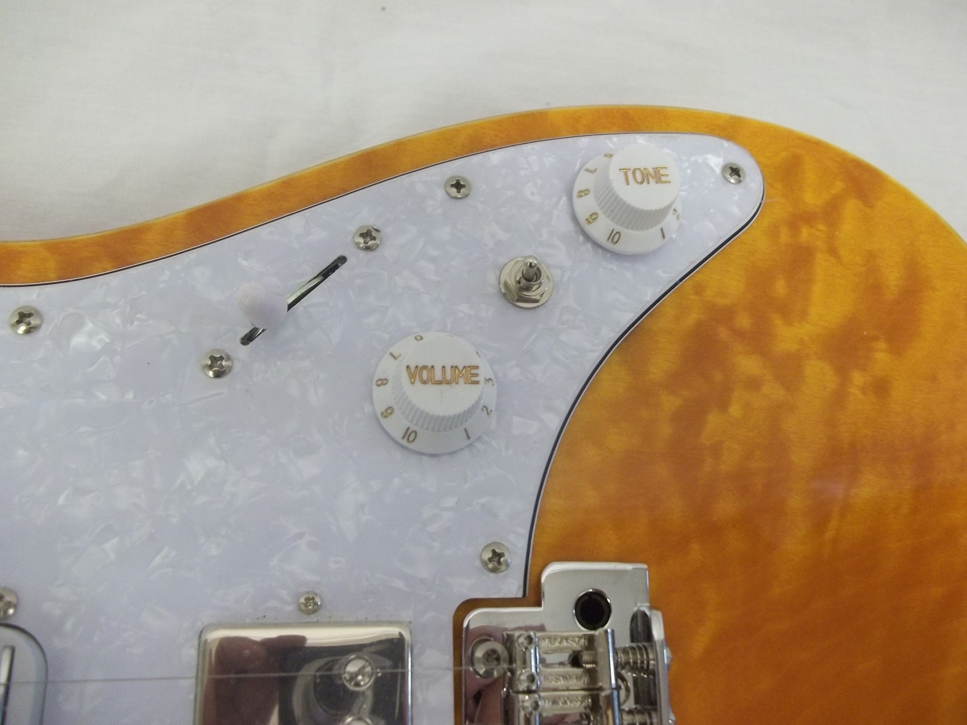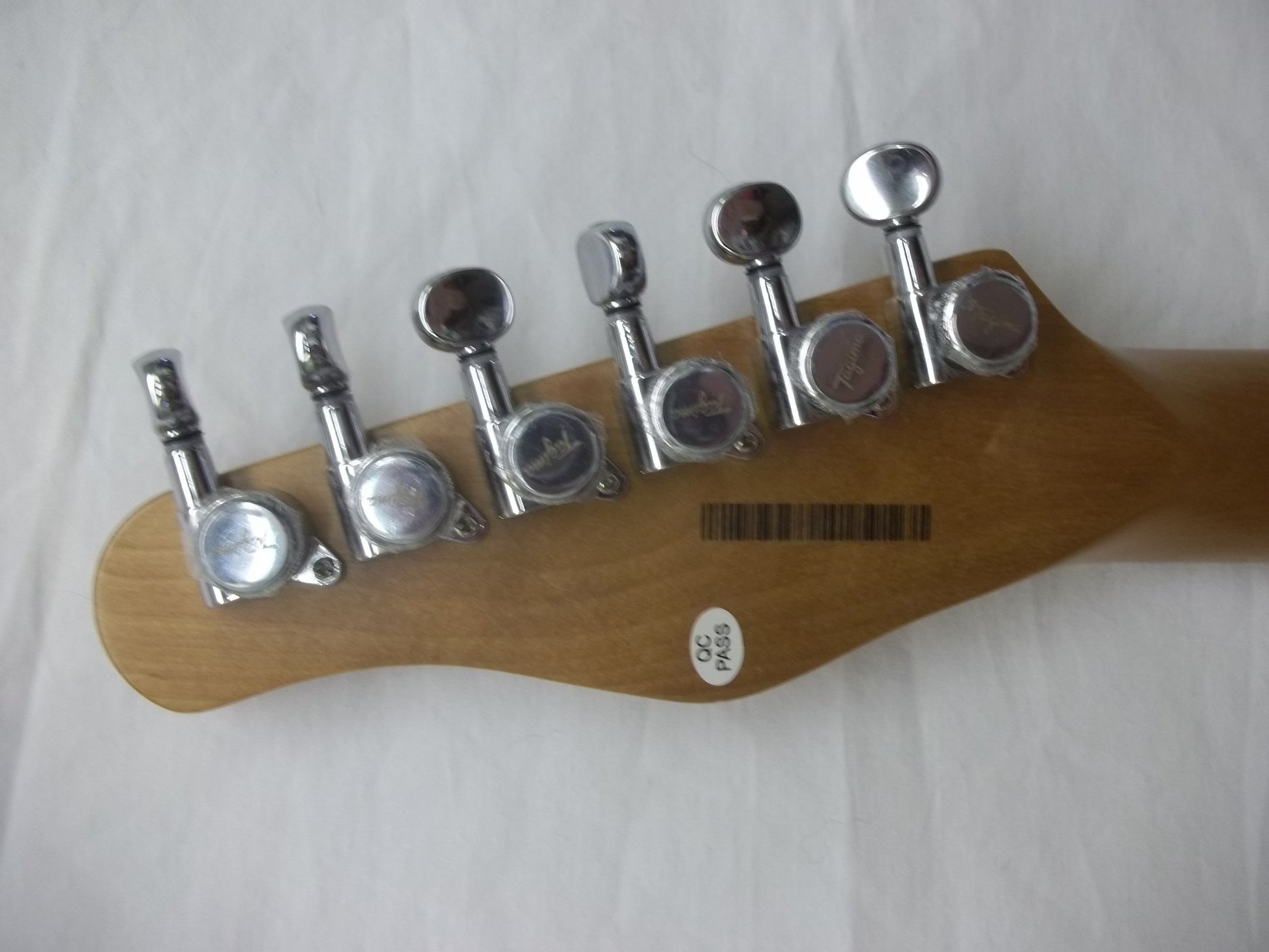 The 2-point vibrato bridge is backed up by a set of Tagima Locking Tuners to keep things under control without needing a locking nut.
