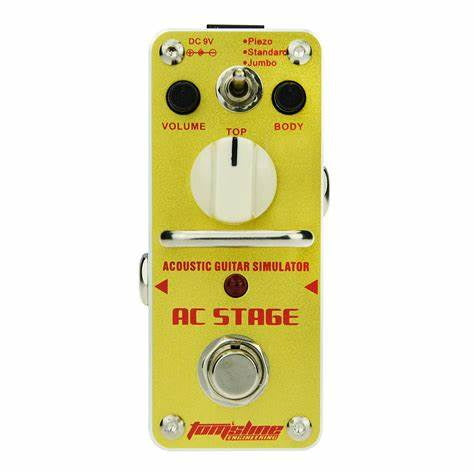 The AC stage lets you dial in a pretty convincing "piezo sounding" folk,dreadnaught or jumbo sized acoustic by selecting the proper switch position and tweaking the controls to the desired final tone.