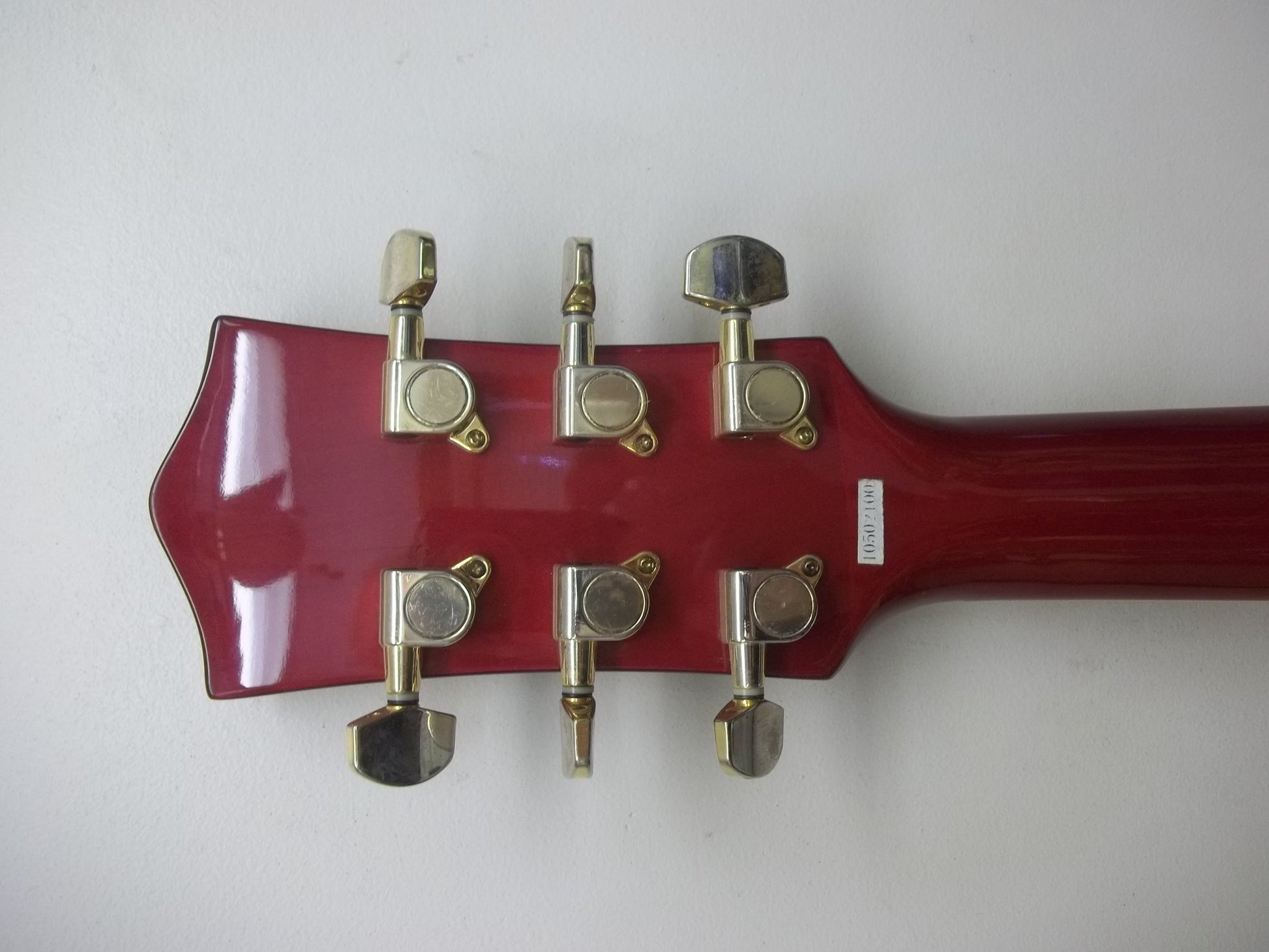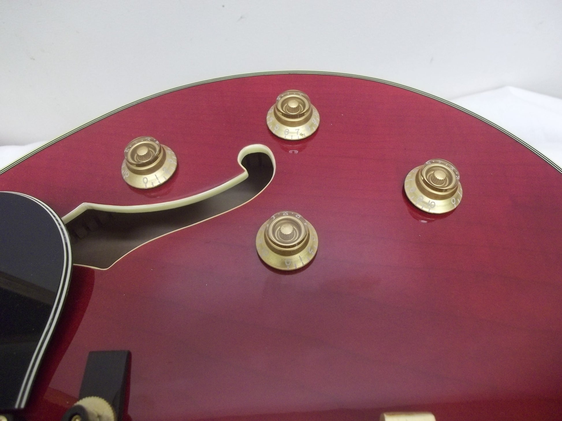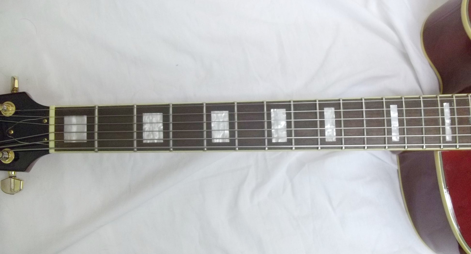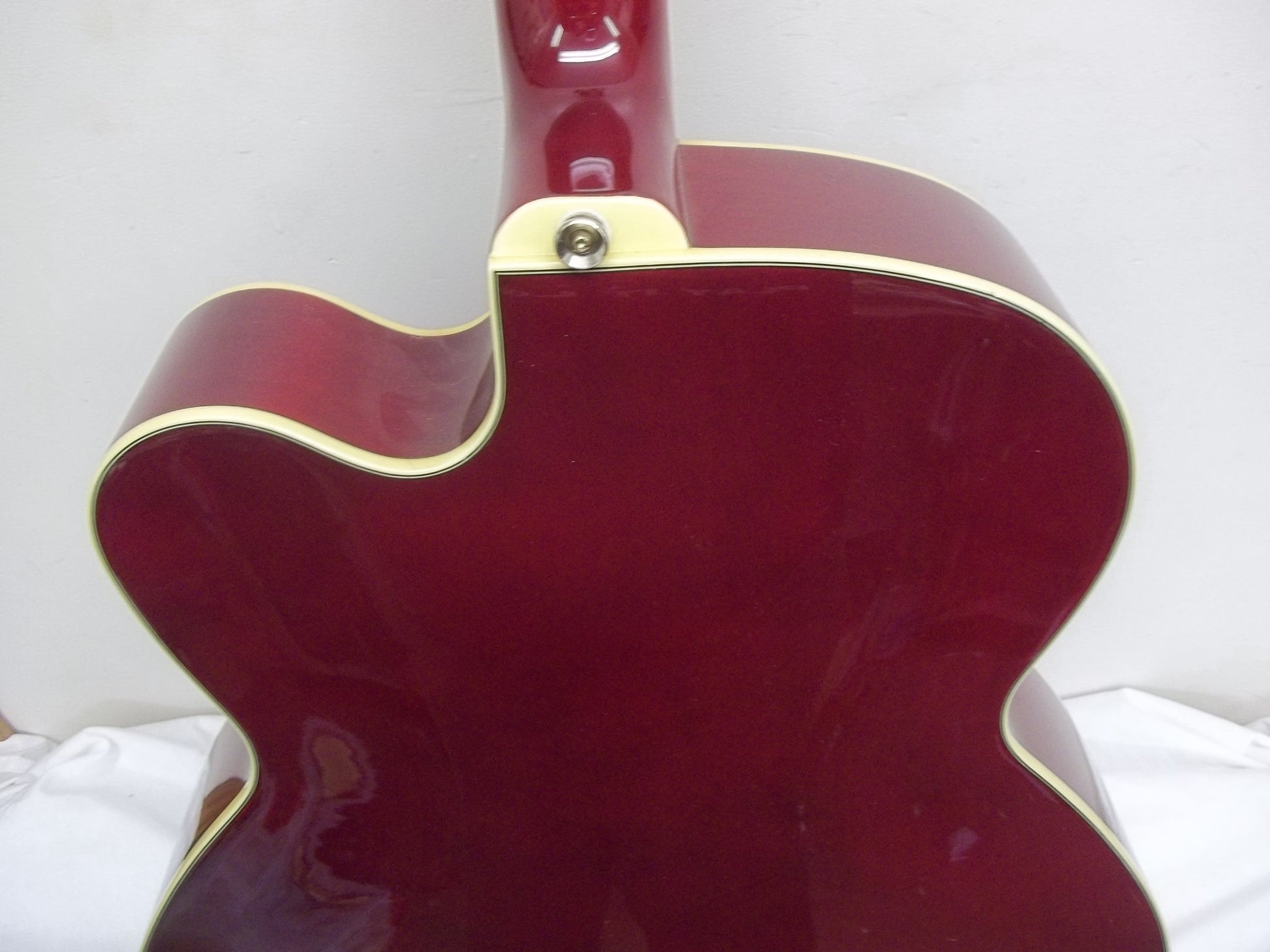 This big bodied archtop guitar is strung with 12-56 strings for that mellow yet fat ,warm jazzy tone.Dual humbucker pickups-each with separate volume and tone controls.Diecast machine heads.Rosewood adjustable bridge.