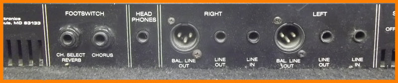 The rear panel houses the headphone jack,speaker defeat switch and footswitch jacks(footswitch NOT included).