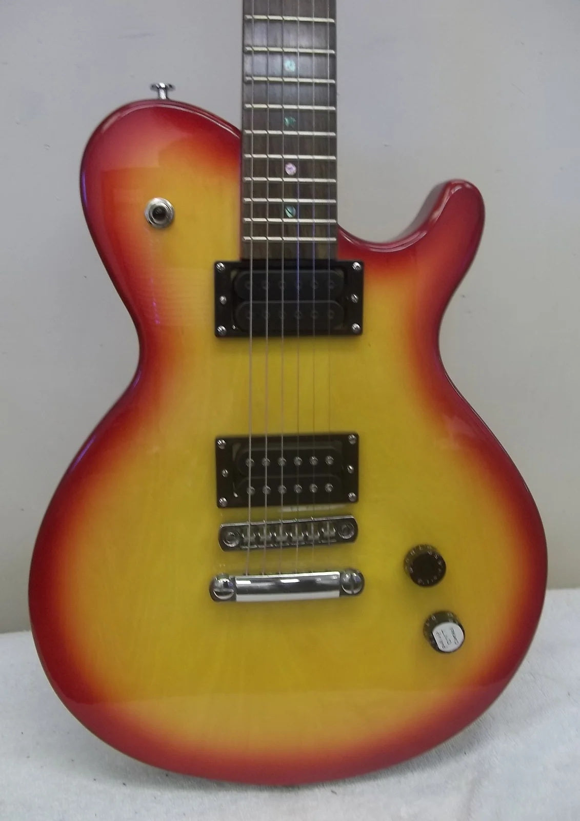 Set-neck construction,with a deeper cutaway for enhanced sustain.Rosewood fingerboard with 1-11/16" nut width and a 16" radius.High gloss two tone burst finish.