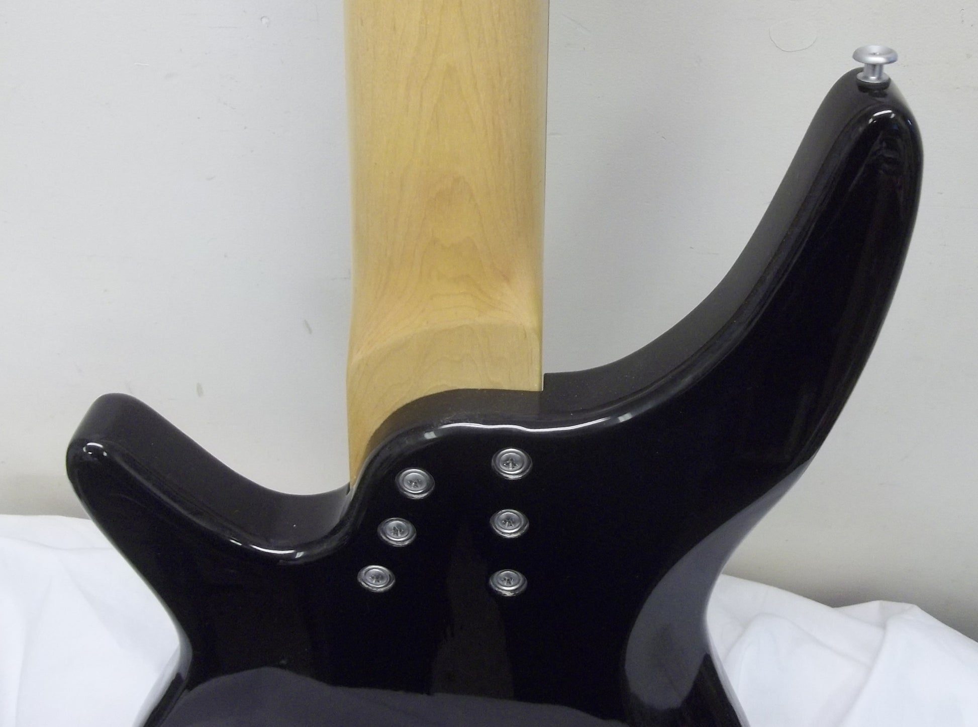 Massive bridge with top loading string system for quick string changes.SIX bolts keep the neck secured.